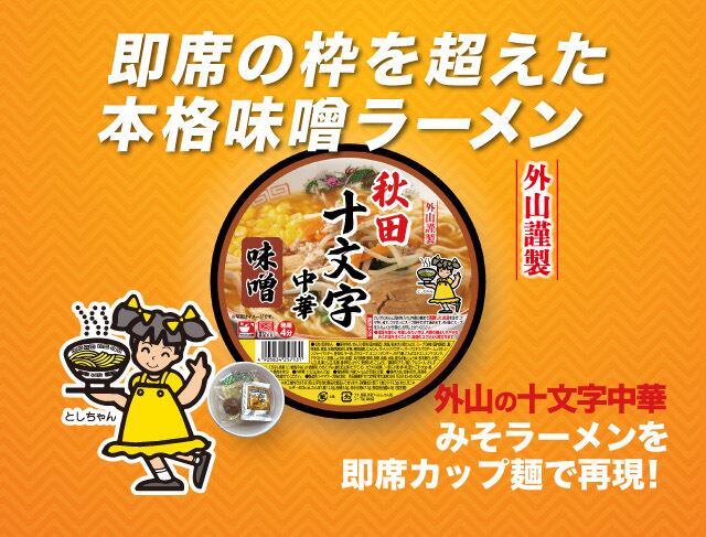 創業以来、多くの方に親しまれてきた「外山の十文字中華みそラーメン(3食生)」の味わいを、即席カップ麺で再現しました。