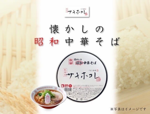 2022年に本格デビューした、秋田県の新ブランド米「サキホコレ」の米粉を使用した即席中華めんです。秋田県の良好な気候や土壌で育ったサキホコレは、風味豊かでふっくらとした食感が特徴です。